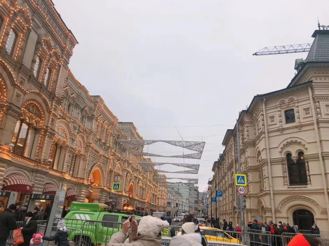 但天色似乎已晚,路上早在四點(diǎn)半就亮起了燈光。瓢潑大雪覆蓋了整個(gè)莫斯科,最深的地方已有五公分,讓每一處風(fēng)景都有了冰雪的布景,仿佛置身在童話。