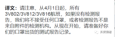 4月1日起,開始海關(guān)也將會(huì)嚴(yán)查!空海運(yùn)等需要正式報(bào)關(guān)的防疫物品,都要送檢,送檢達(dá)到國家標(biāo)準(zhǔn)才能出口。