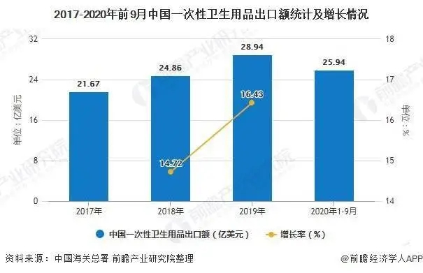我國一次性衛(wèi)生用品進出口市場規(guī)模龐大且不斷增長,2020年前三季度貿(mào)易順差超過2019年全年,其中出口額加速增長,進口額不斷縮減。但同時也面臨著不少挑戰(zhàn):原材料料價格上漲、成本壓力加大、國際貿(mào)易保護主義抬頭、關(guān)稅壁壘等。