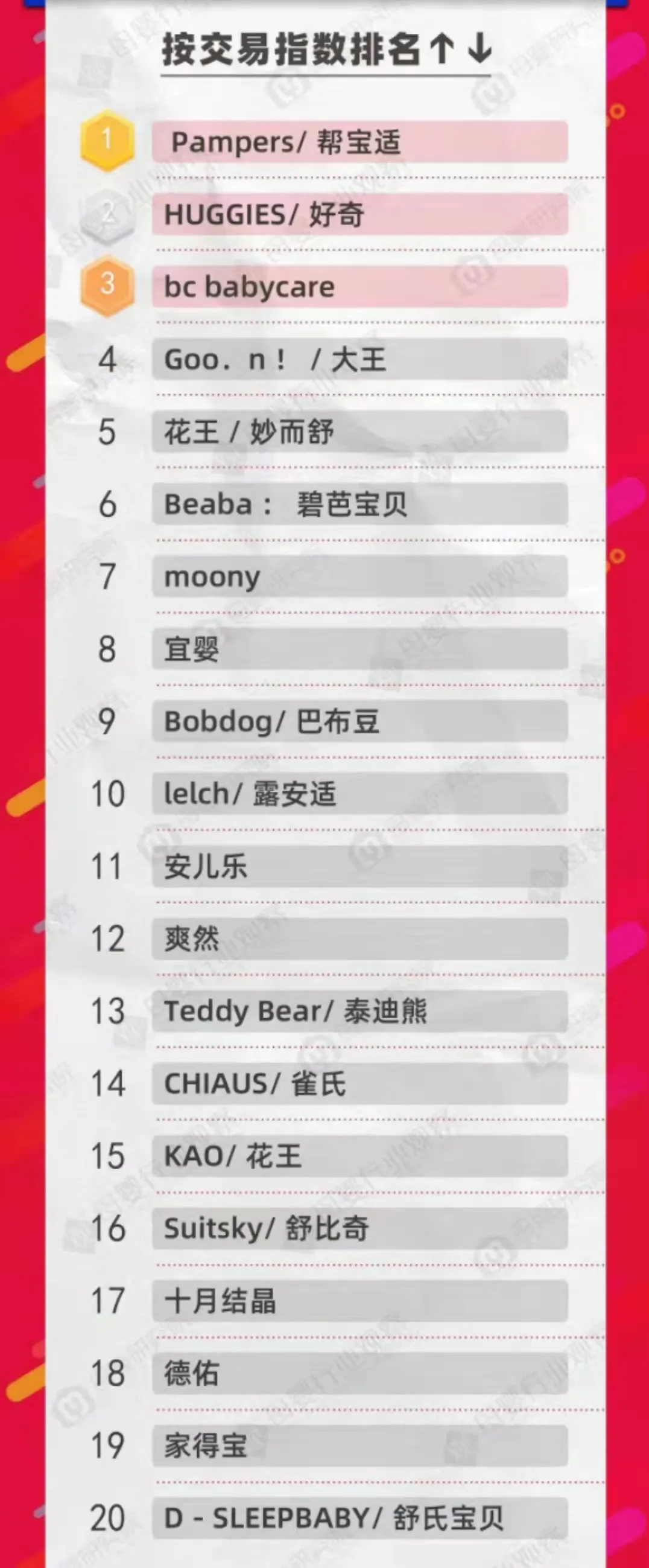 以上榜單是截止到今天早上9點,雙十一紙尿褲終極排名榜單晚上12點才會揭曉,最終榜單如何,大家拭目以待吧!