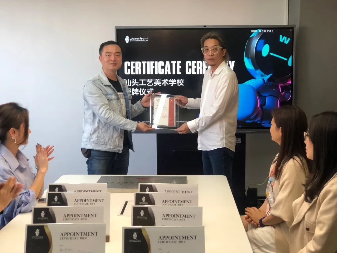 在水一方品牌策劃公司正式掛牌“汕頭工藝美術學校實踐基地”,汕頭工藝美術學校正式掛牌“汕頭在水一方品牌策劃有限公司人才孵化基地”,對合作雙方意義非凡。