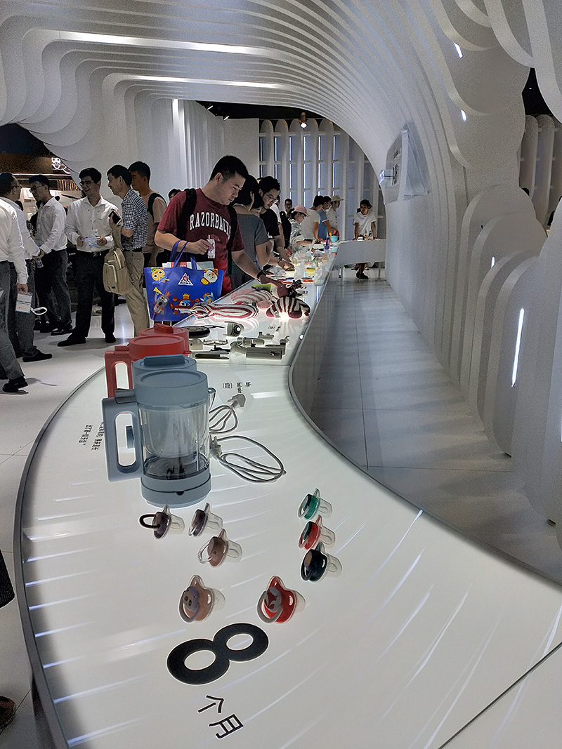 還有展商從宇宙飛船元素找到靈感,結(jié)合到奶瓶產(chǎn)品陳列布景當(dāng)中,令人印象深刻。