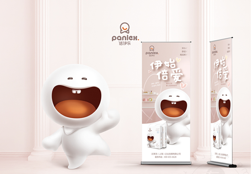 品牌視覺體系構(gòu)建——以“倍伊樂”品牌個性為初構(gòu)思路,純白童真的卡通IP塑造,極具識別性的輪廓造型,與品牌標志形成呼應(yīng),有效鞏固品牌核心視覺認知。可愛型IP契合于母嬰品牌的屬性,同時創(chuàng)造出屬于“倍伊樂”的視覺記憶點,讓品牌在品質(zhì)感之外又多了幾分親切感,滲透著品牌對孩子的了解與關(guān)愛。